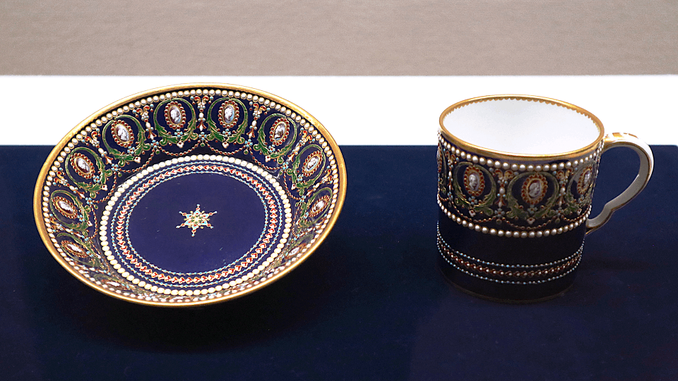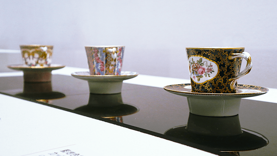 小さなカップ&ソーサの様式の変遷から垣間見える歴史を感じながら、現代のセーヴルを観賞するのも一興。