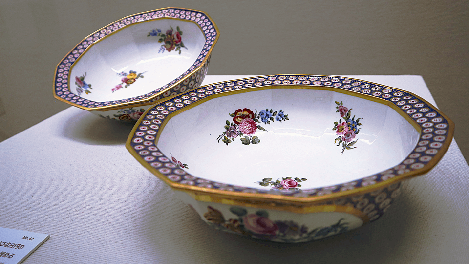 あのマリー=アントワネットや、ポンパドゥール夫人が手にした器などがずらりと並び、フランス宮廷の雰囲気に浸ることができる華やかな会場です。