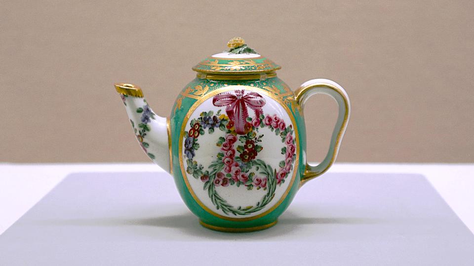 王侯貴族の注文生産ゆえ誰が注文して誰が手にしたのか、来歴がわかる貴重な磁器たち。眼の前のカップやお皿を、ポンパドゥール夫人やマリー=アントワネットが手にしたのかも…なんて想像すると、フランス宮廷のお茶会に招かれたみたい。さあ、あなたのお気に入りを見つけてください。
