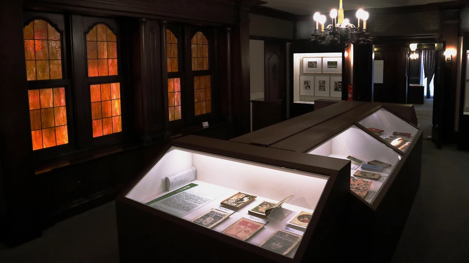 展示室には、「明星」「白樺」など当時のエポックメイキングだった雑誌や本が並びます。話題の雑誌の表紙デザインには、藤島武二や竹久夢二といった人気画家が起用されました。
