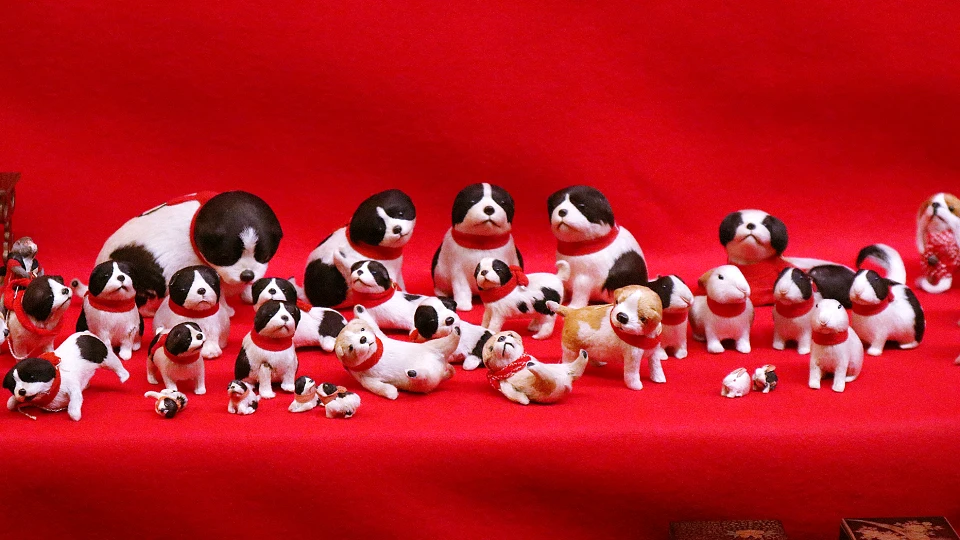 おや、とても可愛らしいヤツらを発見。なぜこんなにたくさんのワンこが雛段に?